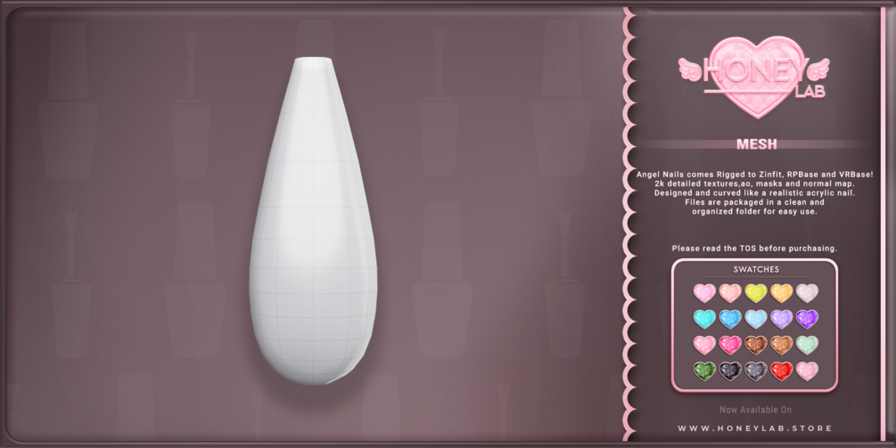 Angel Nails includes 6 FBX files total and a total of 45 textures.